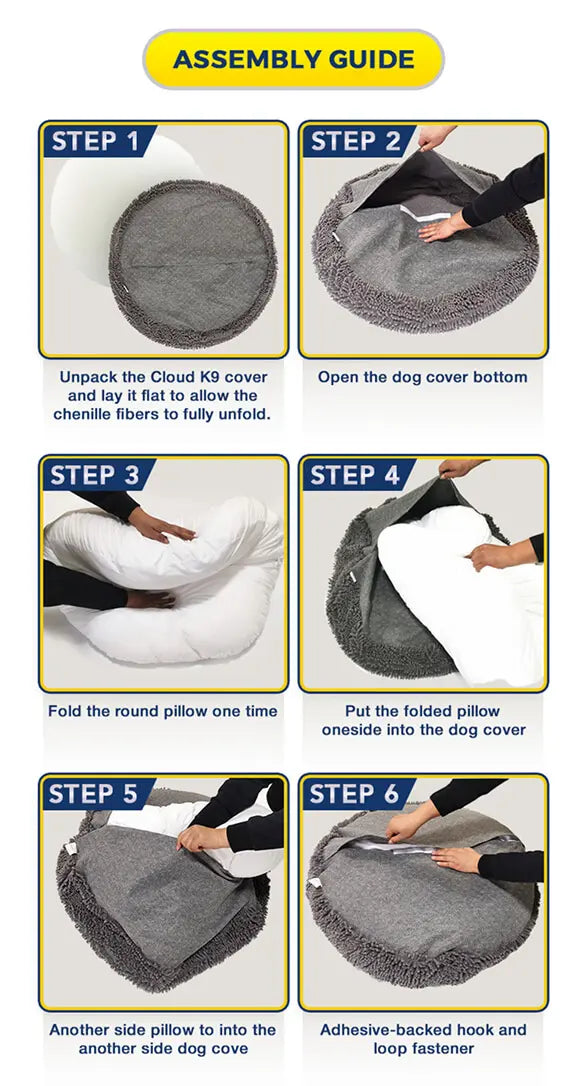 Follow these simple steps to assemble your dog bed cover effortlessly. No tools required—just comfort for your furry friend!