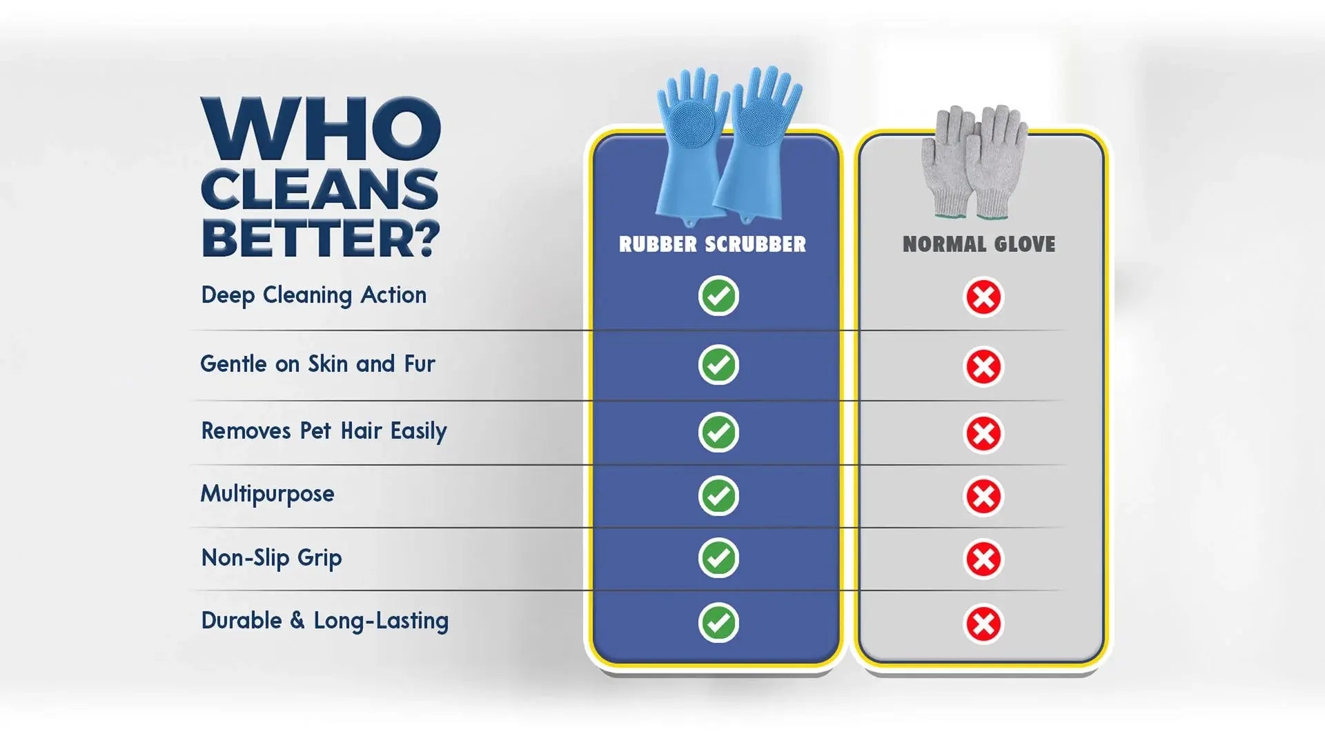 Made from durable, high-quality silicone, our gloves tackle tough cleaning while being gentle on your pet’s fur and skin.