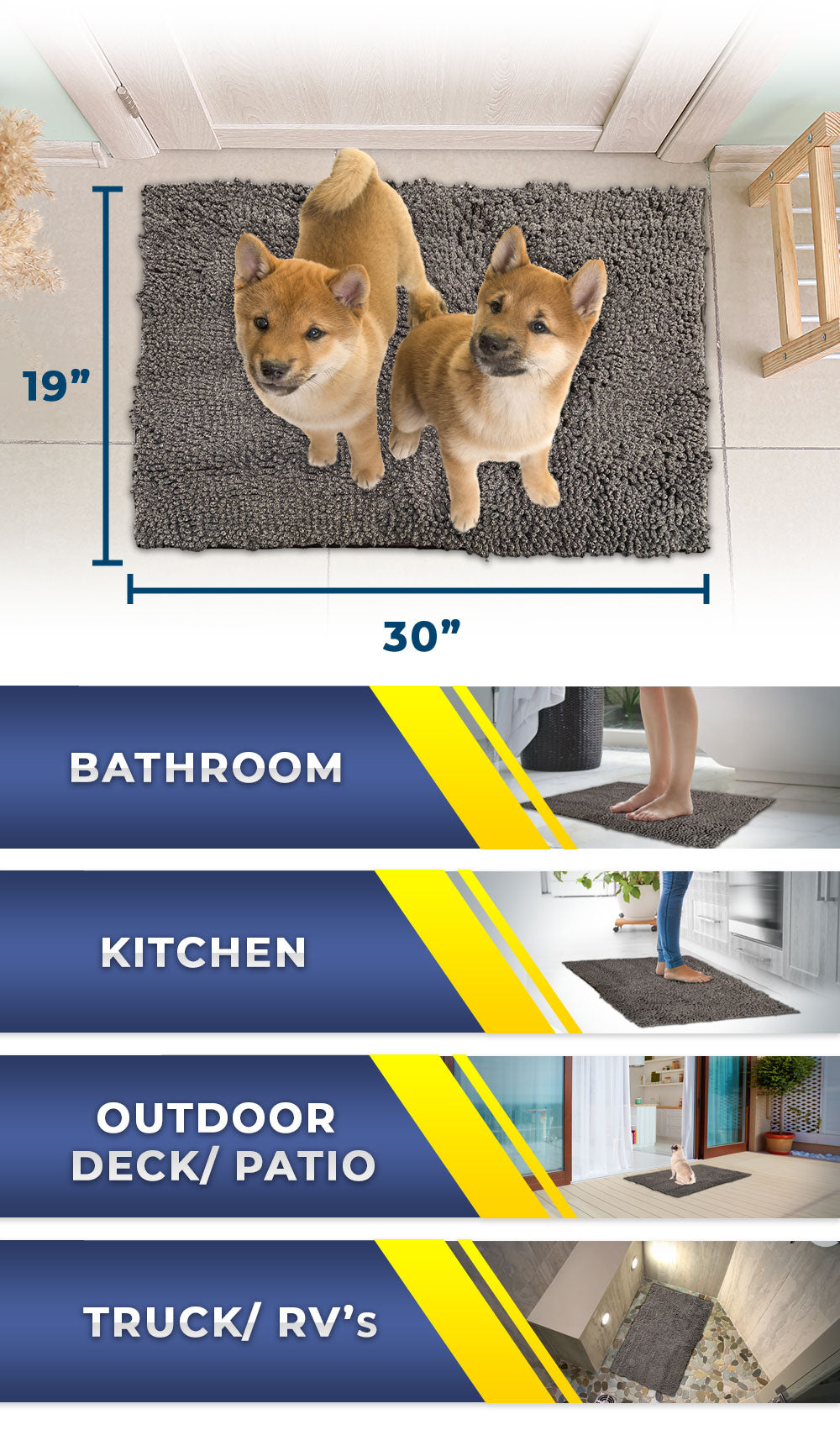 In the Bathroom, Under the Doggy Door, or a Soft Bedding for the Kennel, Place your Muddy Mat Anywhere!