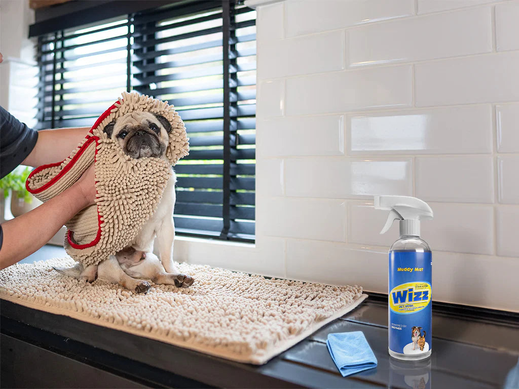 Muddy Mat is specially engineered for dogs both large and small. Keep dirt, moisture, and mud off your floor tiles, carpets, rugs, sofas, and other furniture by adding our attractive mats to your home. Ideal for your front, back, and side doors, as well as your kitchen and bathrooms, our anti-mud mat is machine washable and dryer safe. While you’re here, check out our full collection, which includes our Doggy Dryer Shammy Towel, Wizz - Pet Odor & Stain Eliminator, and other items designed with dog owners in mind.