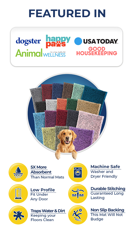 Muddy Mat is an ultra-absorbent, luxurious anti-mud mat that’s perfect for pet lovers. Great for both in doors and outdoors, these mud and snow door mats will protect your floors from busy paws. If you’re tired of other mats that don’t stop your dog from tracking in mud and dirt, these are the best door mats for you.