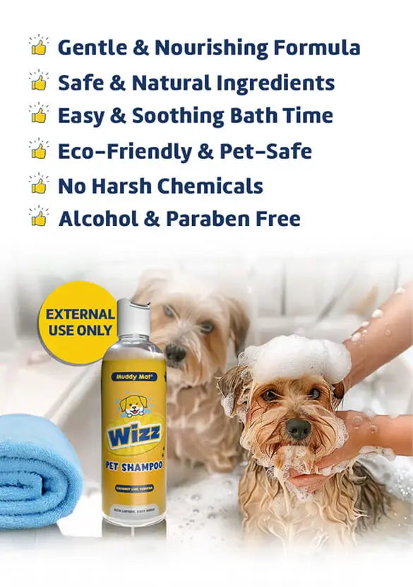 Give your pet the care they deserve with Wizz Natural Pet Shampoo, a gentle, all-natural formula crafted to keep your furry friend clean, soft, and smelling fresh. An ideal dog shampoo that’s safe for cats, too, the Wizz transforms bath time into a soothing experience for both pets and their humans.