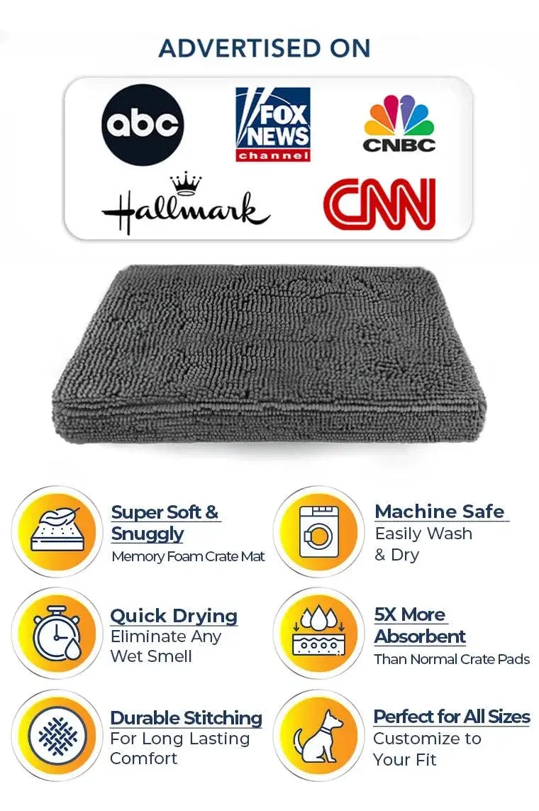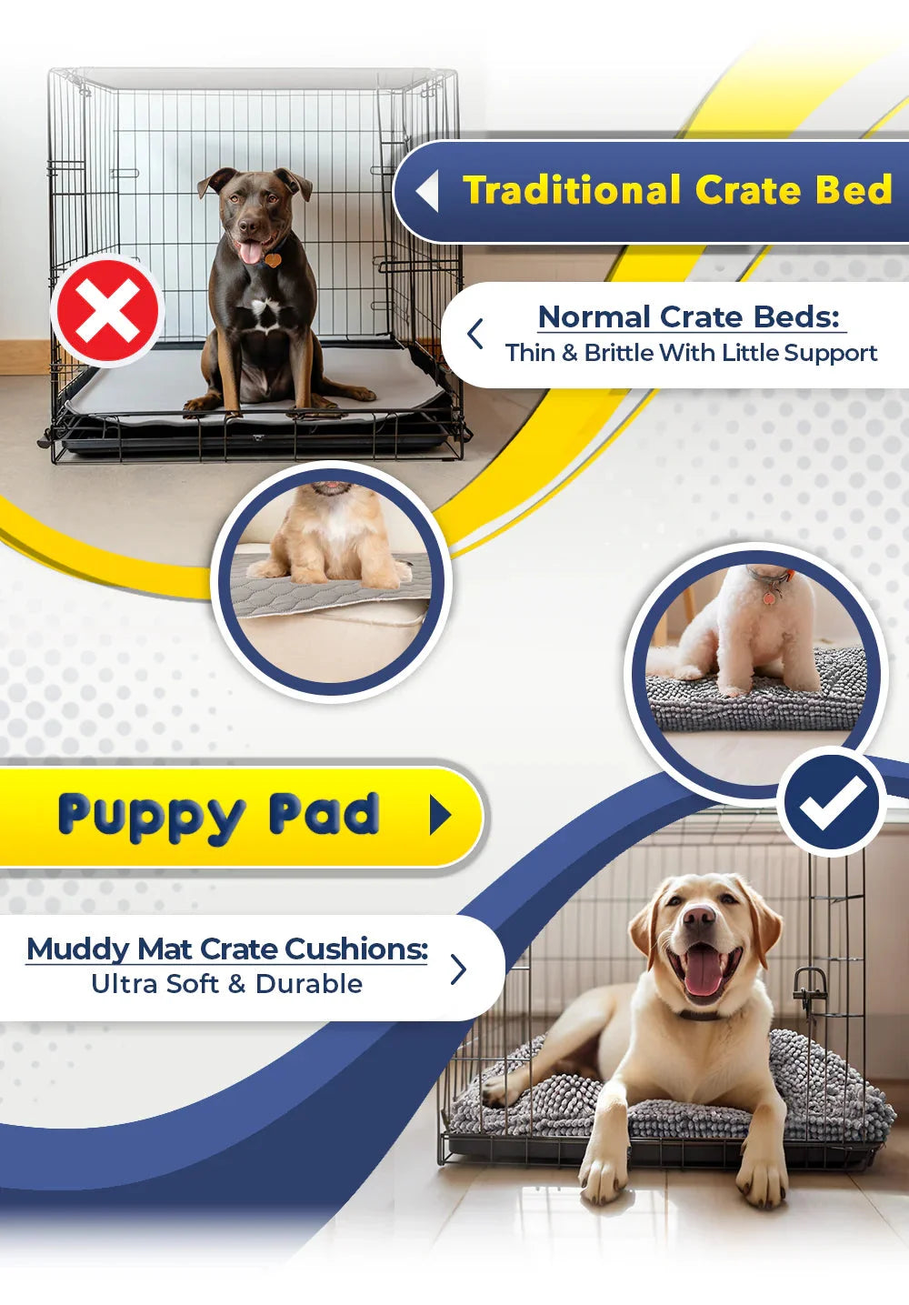 Introducing the Puppy Pad by Muddy Mat! The ultra-soft and relaxing water- and liquid-proof crate bed features the same chenille material as our bestselling Muddy Mat® - Anti-Mud Mat.